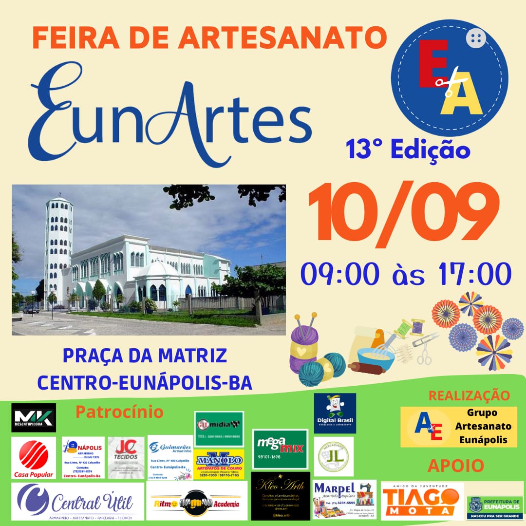 Gostaria de convidar você e sua família para nos prestigiar em nossa feira de Artesanato EunArtes neste sábado agora, em novo LOCAL.