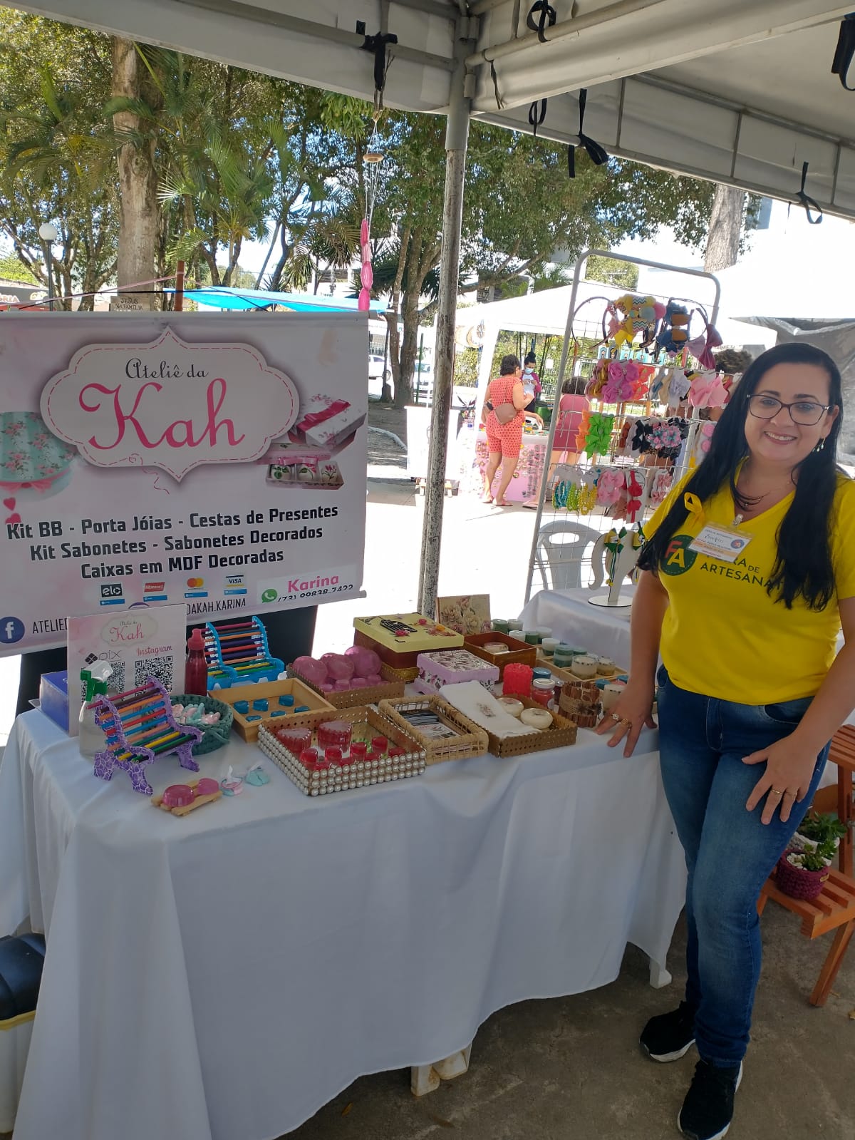 Em destaque tivemos o trabalho da artesã Nathália com pinturas em telhas, entre outros artesanatos tivemos a Costura criativa, Biscuit, Saboaria, Velas Aromáticas, MDF, laços e Tiaras, Bijouterias, Fios de Malha , crochê,Canecas Personalizadas, Madeiras enxoval de Bebê entre outros.