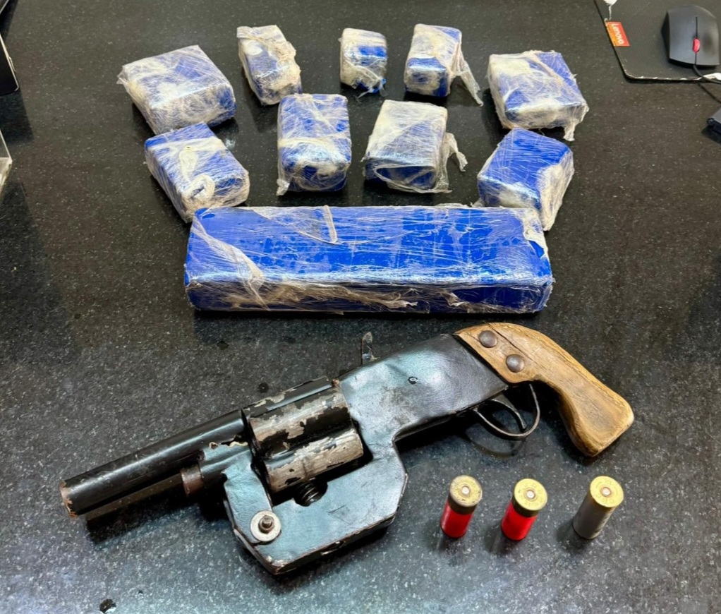 Durante a operação foram apreendidos uma espingarda calibre 12, três munições do mesmo calibre e cerca de 2,5 quilos de maconha, divididos em dez tabletes.