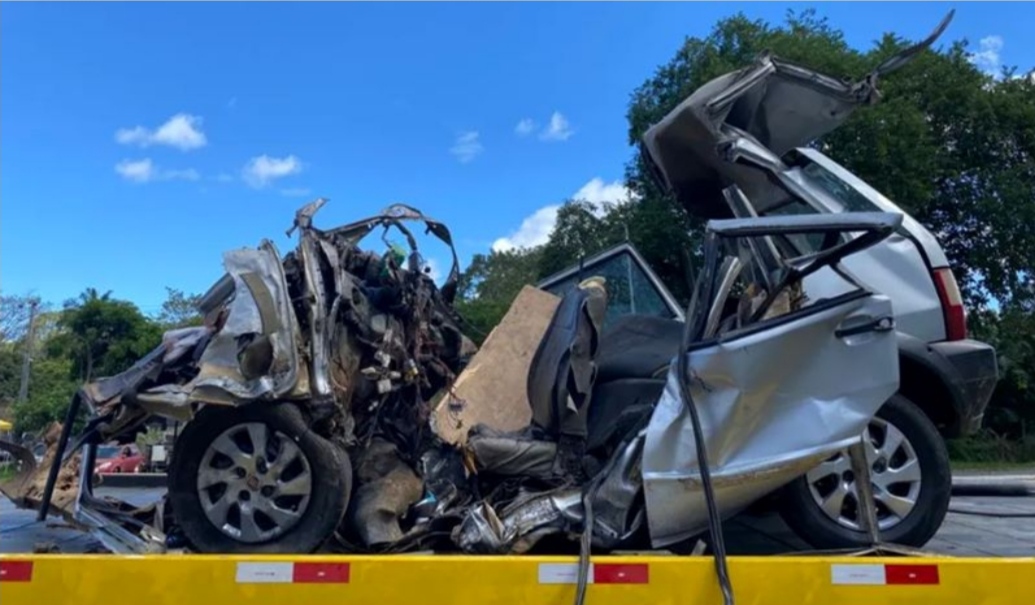 O automóvel em que elas estavam ficou totalmente destruído com o impacto da batida. No ônibus, que fazia a linha Linhares (ES) – Itabuna (BA) e pertence à Viação Águia Branca, ninguém se feriu.