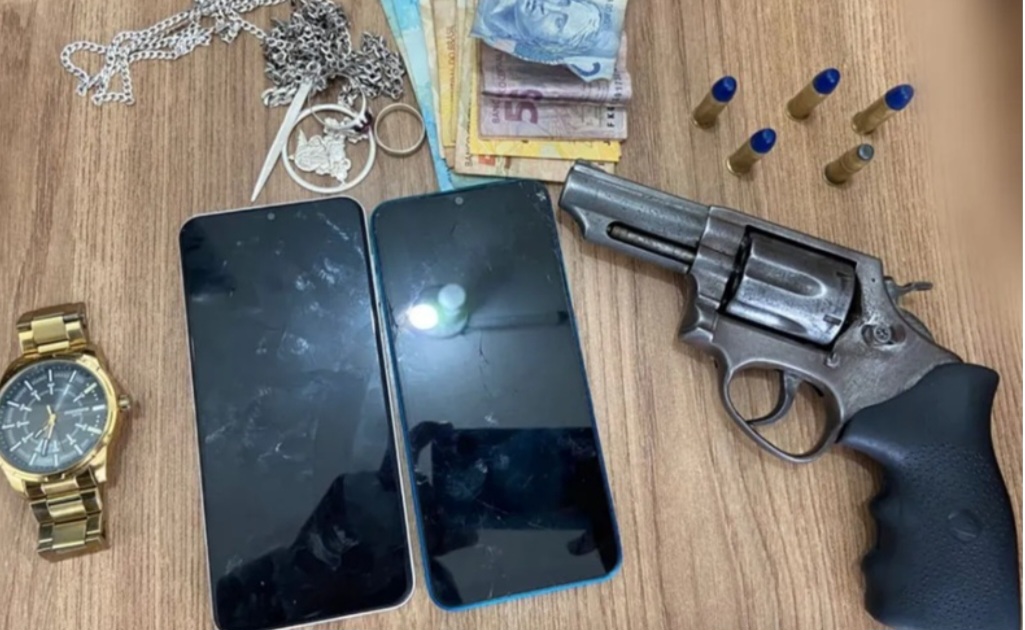De posse das informações referentes às características do automóvel, os militares intensificaram as buscas, vindo a encontrá-lo. Foi dada ordem de parada ao condutor que, ao avistar a aproximação policial, iniciou uma tentativa de fuga, mas foi alcançado. Durante a abordagem aos quatro ocupantes, foi encontrado um revólver calibre 38 e munições.