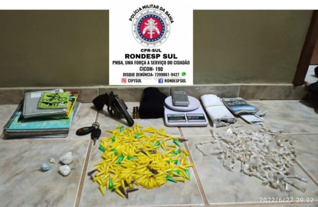 Durante a ação policial foram apreendidos; 154 pedras de crack totalizando 48 gramas, 223 ependorfes de cocaína totalizando 171 gramas, 09 pinos vazios de ependorf, 02 balanças de precisão, 01 balaclava preta, 01 revólver calibre 38 com 06 cápsulas deflagradas, 07 cadernos e cadernetas com anotações de tráfico e uma mochila que provavelmente eram usados para controle dos bandidos.