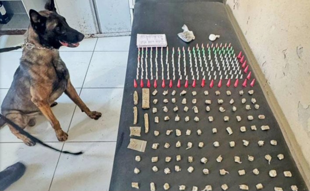 Durante a varredura no local foi empregado o K-9 Baruk, que compõe o Canil Setorial do 8° BPM, e em três pontos distintos foram encontrados os seguintes materiais: