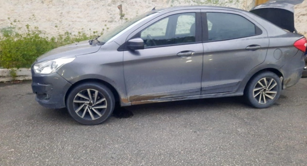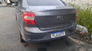 O Ford Ka, ostentando a placa PLO4G79, foi abordado na BR 367 no perímetro urbano de Eunápolis, após um trabalho de investigação.