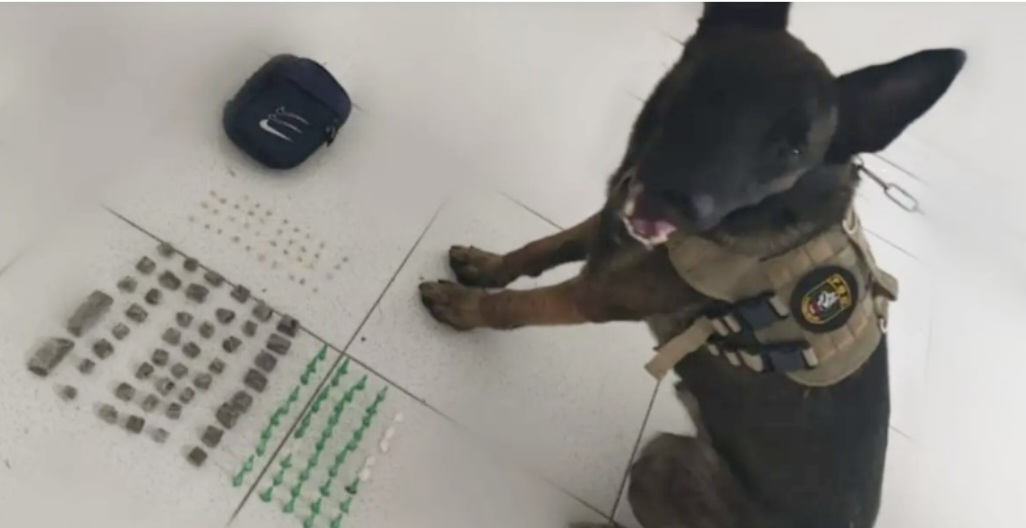 O suspeito não foi localizado, no entanto com ajuda do faro canino, os policiais conseguiram localizar uma bolsa contendo drogas.
