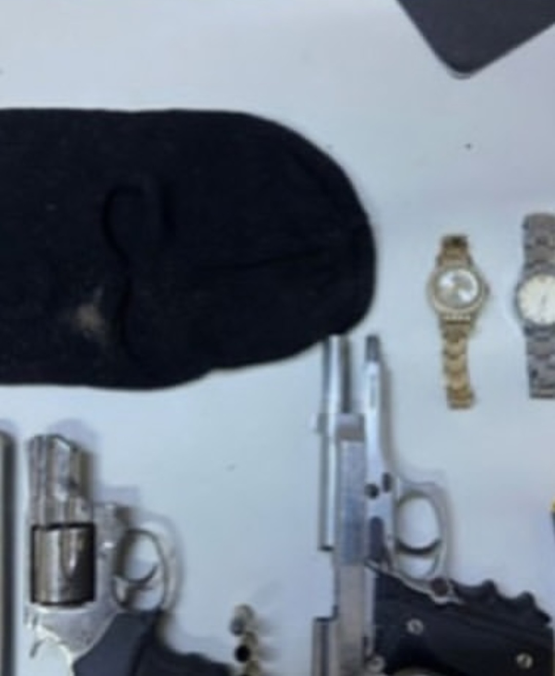 Com eles, a PM apreendeu uma pistola, um revólver, quatro relógios, sete cartuchos de pistola intactos, quatro munições de revólver três deflagradas, uma balaclava (“toca ninja”), um celular e um carregador de pistola com munições.
