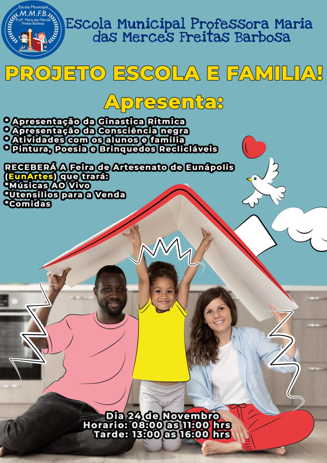 Venho convidar a todos da nossa comunidade escolar nesta sexta feira, dia 24 de novembro de 2023 para participar do nosso projeto Escola e Família uma aproximação necessária.
