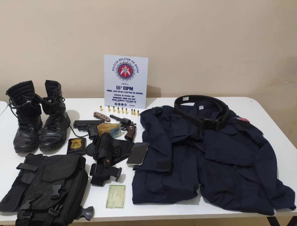 Após receber denúncias de que um indivíduo se passava por comandante da guarda municipal de Entre Rios e que estaria de posse de 2 (duas) armas de fogo.