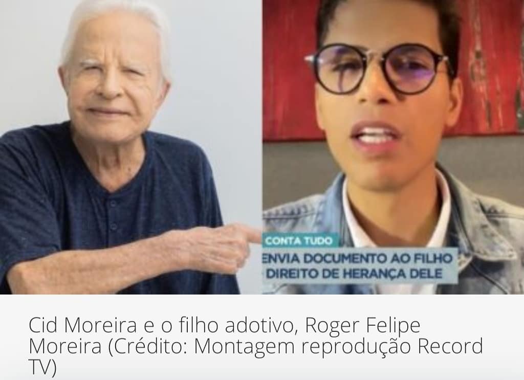 Sempre muito discreto e sem se envolver em polêmicas, Cid Moreira, de 93 anos, teve seu nome exposto por Roger Felipe Moreira, seu filho adotivo, que revelou nesta terça-feira (13), para o progama “Balanço Geral”, da Record TV, que foi ‘deserdado’ pelo veterano, além de se sentir mal por Cid dizer ter sido “um engano adotá-lo”.