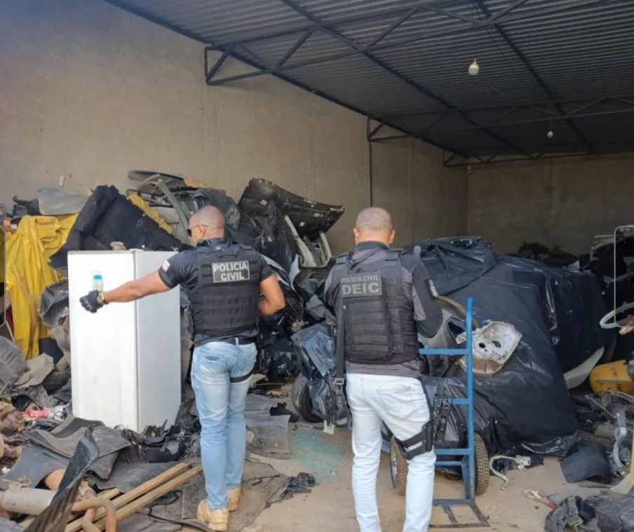 O suspeito foi detido em flagrante enquanto transportava peças automotivas em uma caminhonete Ford Ranger. A abordagem levou os investigadores até dois galpões clandestinos — um localizado na Avenida Alcides Lacerda e outro nos fundos do Posto Verão — onde foram encontrados veículos em processo de desmontagem, peças automotivas com sinais de adulteração e materiais com suspeita de origem criminosa.
