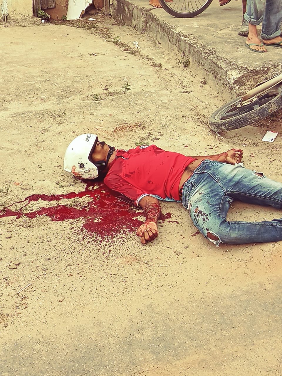 A vítima foi socorrida pela equipe do Samu e encaminhada ao HRE. Estado gravíssimo, baleado em pescoço, costa e face. Estava na garupa do mototáxi, portando 1000 reais em espécie e maconha .