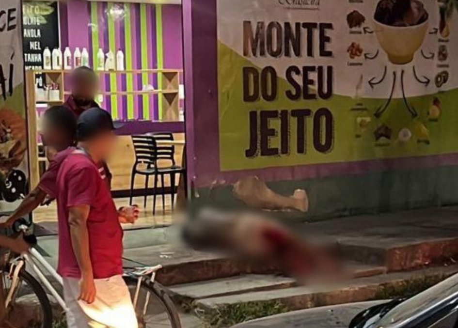 Imagens nas redes sociais mostram a vítima caída na calçada de uma lanchonete, com ferimentos visíveis