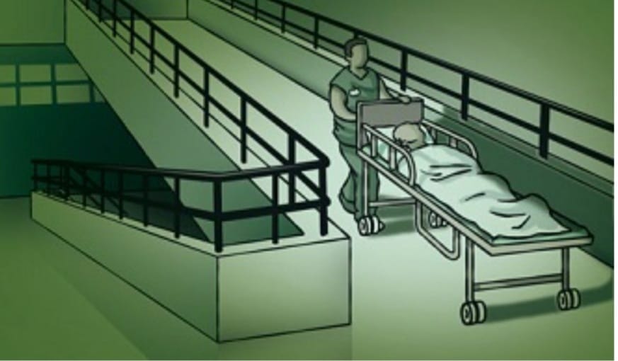 É urgente a construção de uma rampa interna para transporte seguro de pacientes. Rampas compondo saídas de emergência são importantes para evacuação de pessoas com mobilidade restrita ou sem mobilidade própria por ocasião de uma emergência de incêndio, por exemplo.