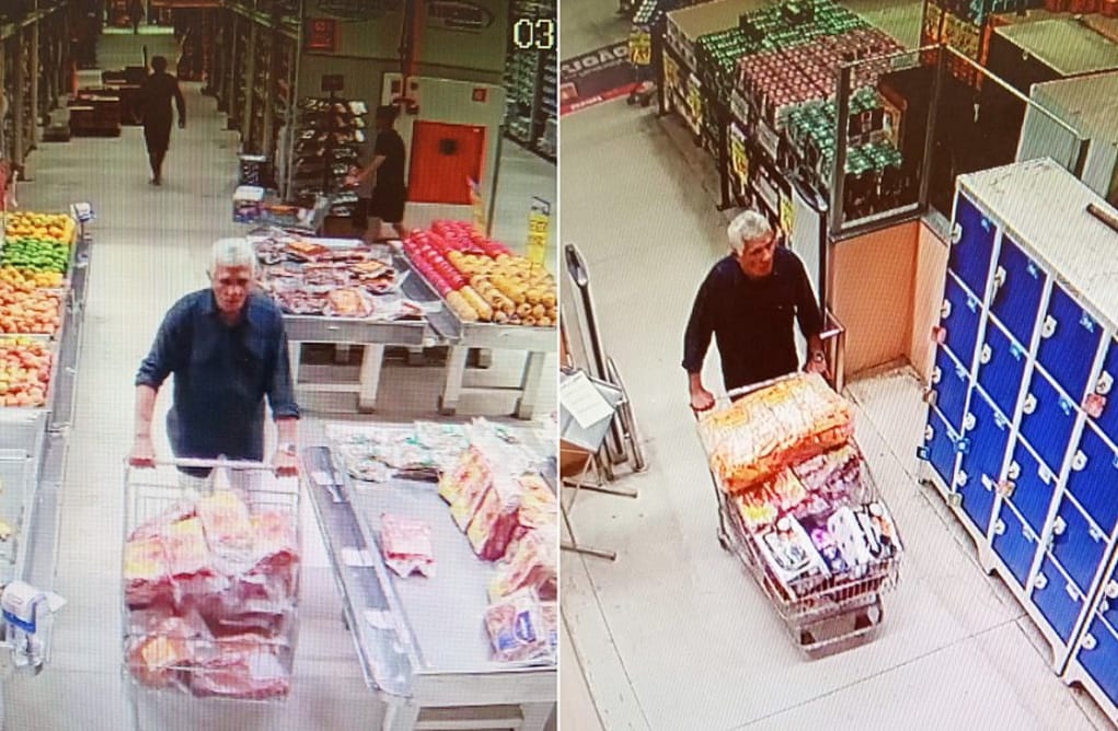 Dando continuidade ao delito, ele deixa o carrinho na área externa, manobra o automóvel até a saída, volta até o carrinho e leva as compras até veículo e vai embora. O gerente do supermercado informou que foram levados 95 quilos carne, 25 quilos de bacon e um fardo de biscoito.