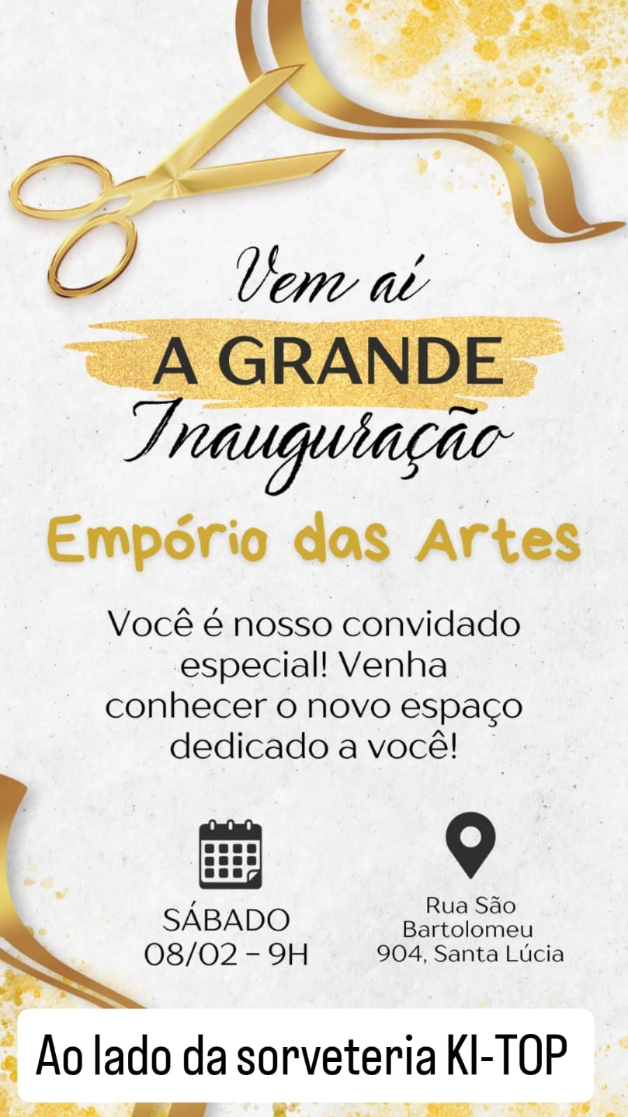 Será na manhã deste sábado 08 de fevereiro, a inauguração do ateliê da kah, que deixou de ser uma loja on-line e agora é uma loja física , nós e outros parceiros vamos inaugurar a nossa loja e gostaria de convidar você e sua família para vir nos visitar e conhecer nosso empreendimento e espaço às 09:00 horas no endereço que consta em nosso convite.Aguardo vocês que são todos nossos convidados.