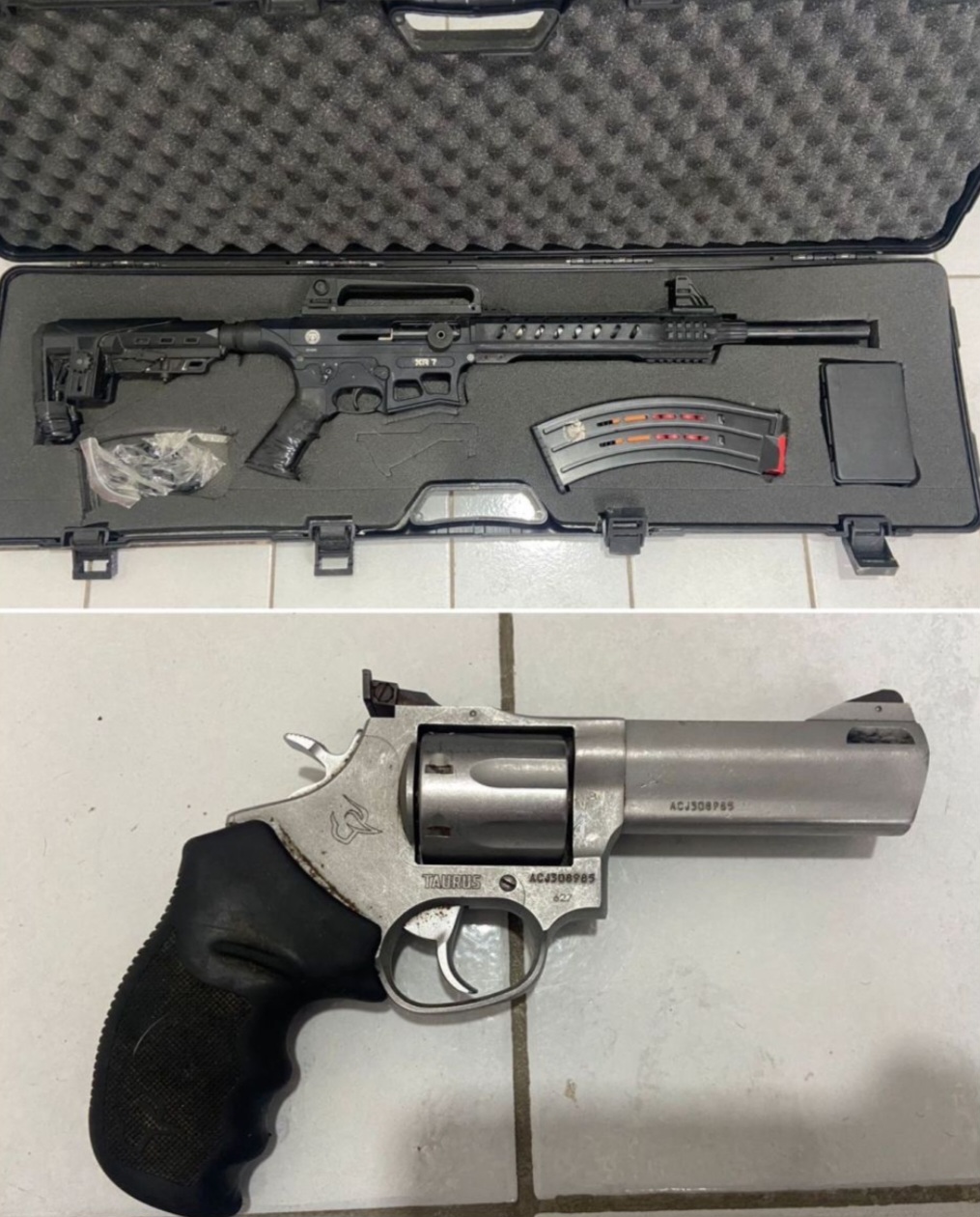 Durante as buscas na residência do investigado, os policiais localizaram e apreenderam um revólver calibre .357 e uma espingarda semiautomática calibre 12. Todo o material foi encaminhado e permanecerá sob custódia da unidade policial, à disposição do Poder Judiciário.