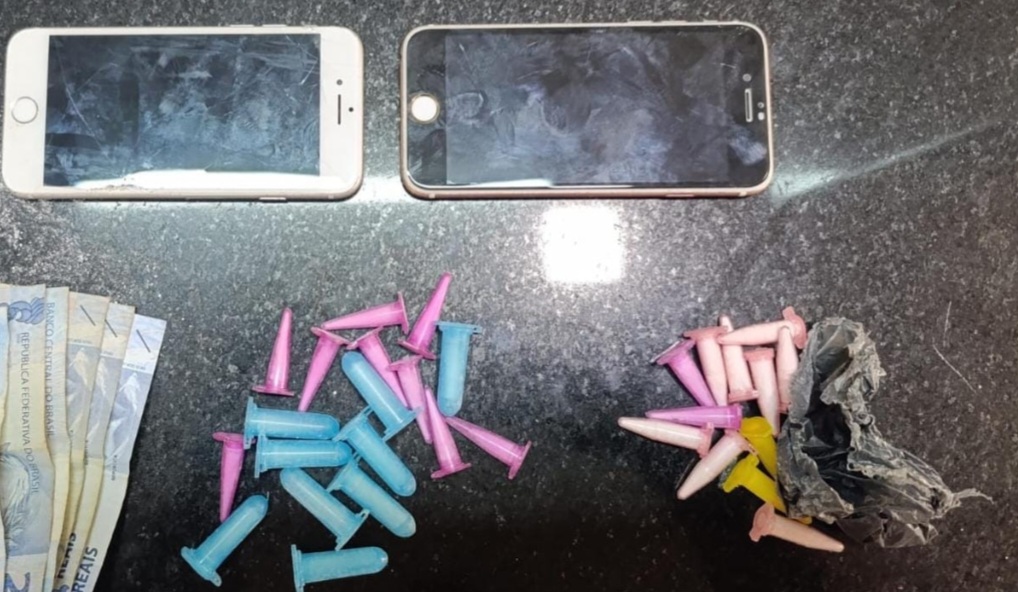 Ao perceberem a aproximação da viatura, os suspeitos tentaram fugir, mas dois menores foram alcançados pelos policiais. Durante a busca pessoal, foram encontrados 30 pinos de cocaína e uma bucha de maconha.