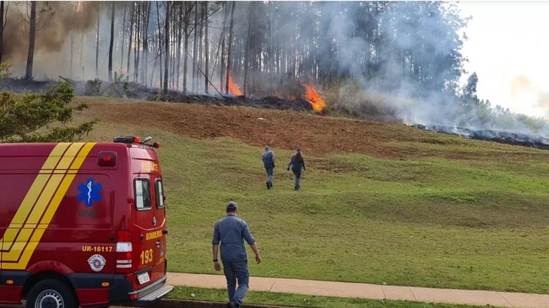 Incêndio em mata de Piracicaba após queda de avião no bairro Santa Rosa — Foto: Corpo de Bombeiros de SP