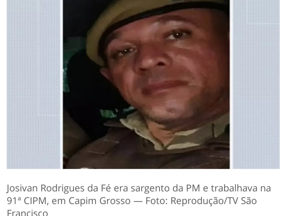 Um sargento da Polícia Militar morreu depois de ser baleado no estacionamento de um supermercado na cidade de Juazeiro, no norte da Bahia. O crime ocorreu na tarde de domingo (1º). Josivan Rodrigues da Fé estava dentro de um carro, quando outro carro parou ao lado e homens atiraram no PM.