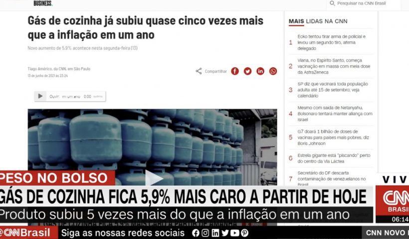 A partir desta segunda-feira (14/06), o gás de cozinha está mais caro. O preço médio de GLP sofreu reajuste de 5,9% nas distribuidoras, passando para…