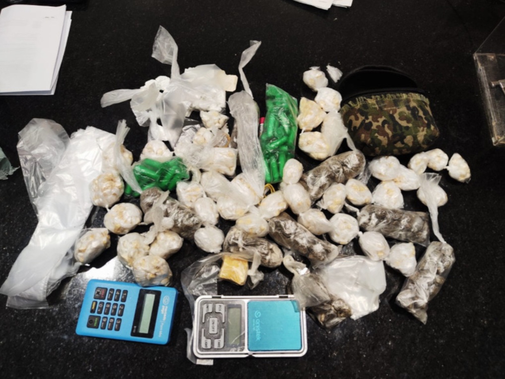 Durante a abordagem, foram encontrados com o trio uma grande quantidade de drogas, entre elas 191 trouxinhas de maconha, 697 pedras de crack, 12 trouxinhas de cocaína, além de porções a granel das três substâncias (140g de maconha, 185g de crack e 70g de cocaína). Também foram apreendidos uma balança de precisão e uma maquininha de cartão.