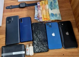 Os assaltantes levaram dois celulares, dois relógios, cordões prateados e dourados, R$ 230,00 em espécie e obrigaram um dos engenheiros a fazer uma transferência via Pix no valor de R$ 90,00.
