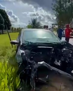 O acidente envolveu uma caminhonete Ford Ranger, da Neoenergia Coelba, e um veículo Hyundai HB20. No carro de passeio estavam um homem, uma mulher e duas crianças.